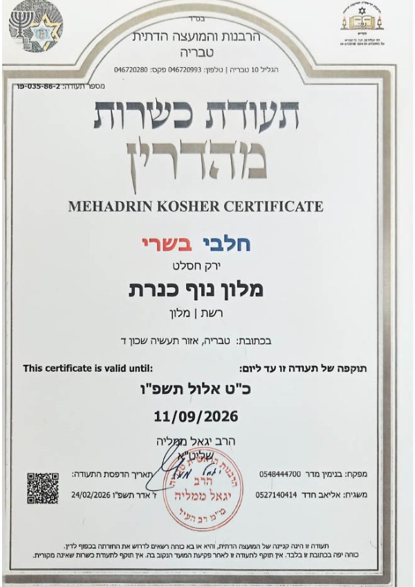 להלן פרטי הכשרות הגבוהה והאיכותית הנשמרת במלוננו.
